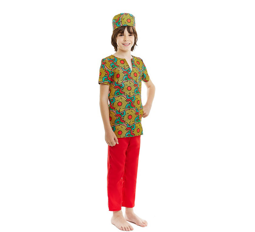 Disfraz de Africano para niño. Incluye Camisa, pantalón y gorro. No incluye resto de accesorios mostrados en imágenes.