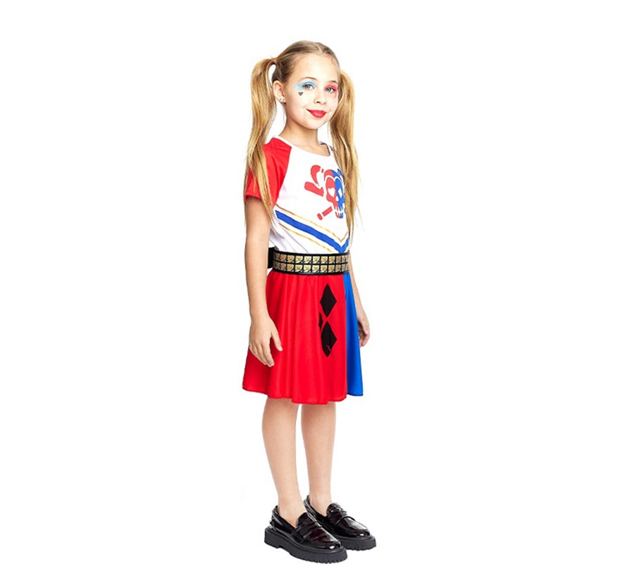 Disfraz de Animadora Sádica bicolor para niña y adolescente. Incluye Vestido y Cinturón. No incluye Pompones, calcetines ni calzado