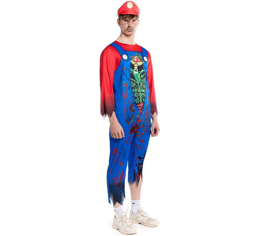 Disfraz de Fontanero Zombie para hombre. Incluye Mono, Gorra. No incluye resto de accesorios mostrados en las imágenes.