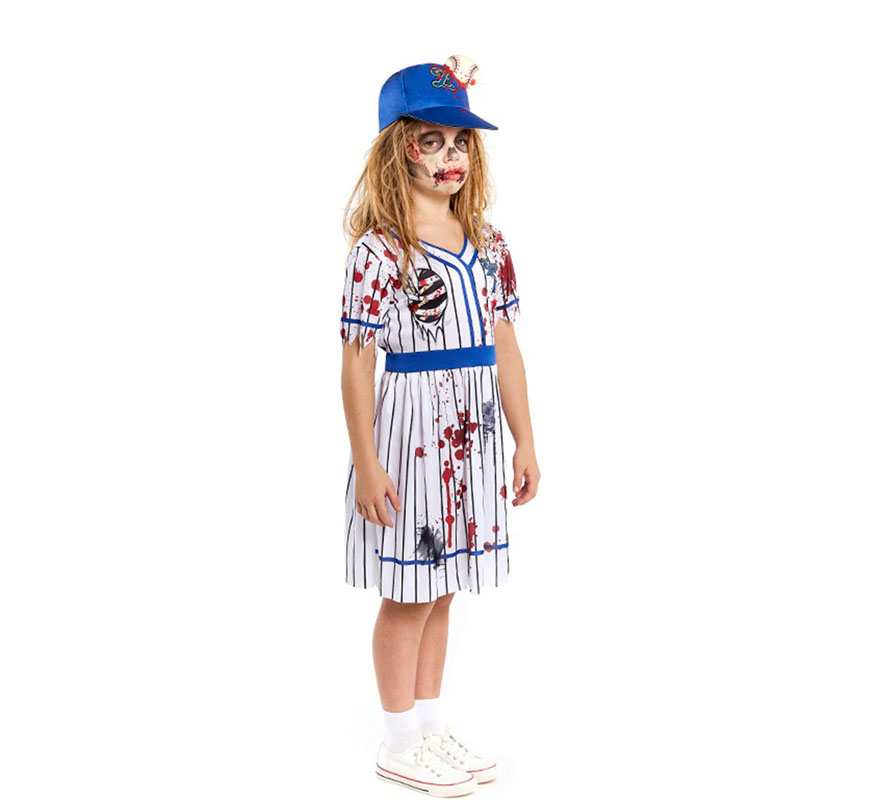 Disfraz de Jugadora de Béisbol Zombie para niña. Incluye Vestido, Gorra. No incluye resto de accesorios mostrados en las imágenes.