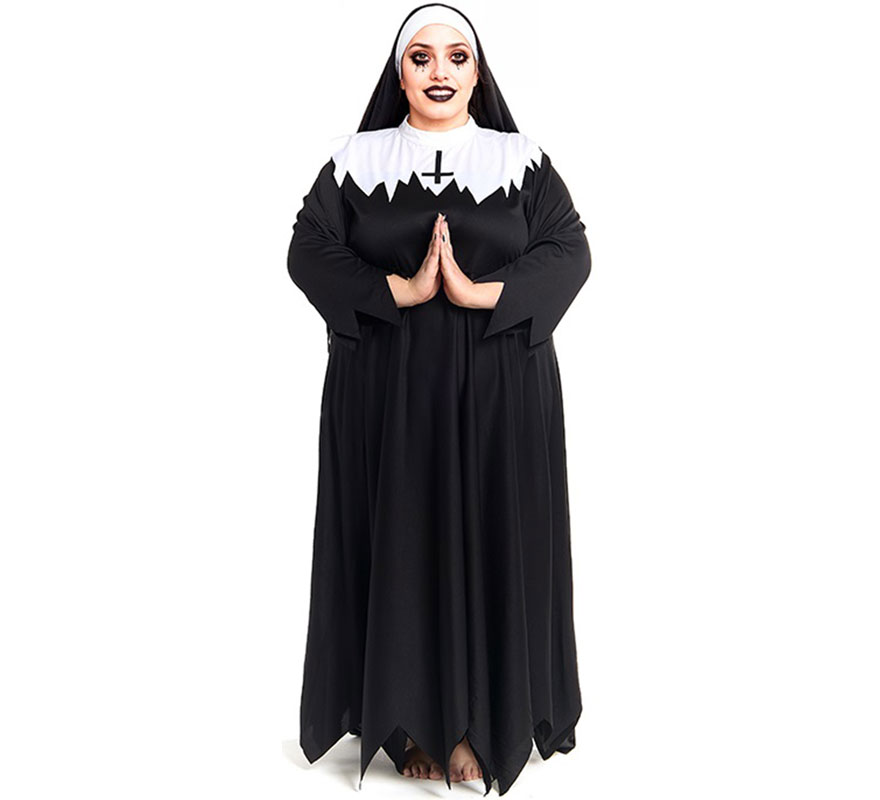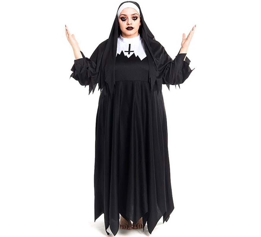 Disfraz de Monja Zombie túnica con picos para mujer. Incluye Vestido y Cofia . No incluye Collar.