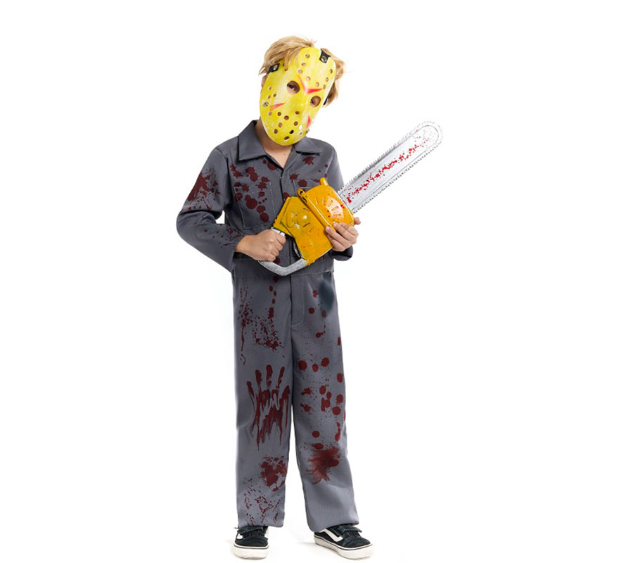 Disfraz de Psicópata Enmascarado para niño. Incluye Maillot enterizo y máscara. No incluye resto de accesorios mostrados en las imágenes.