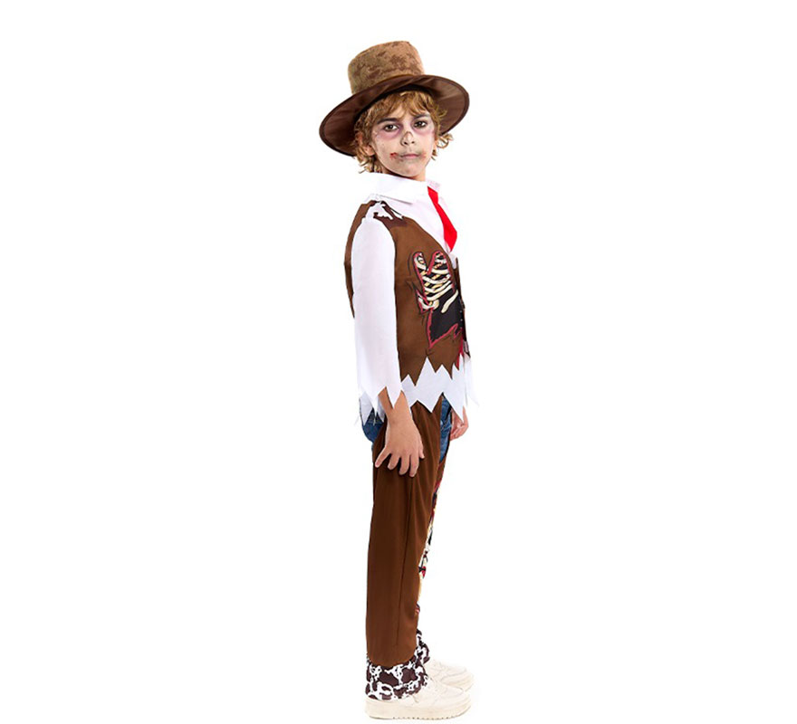Disfraz de Vaquero Zombie para niño. Incluye Camisa, Cubrepantalones, Pañuelo. No incluye resto de accesorios mostrados en las imágenes.